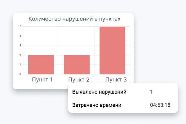 Расширенная аналитика. Встроенные отчёты и выгрузка данных помогают проводить глубокий анализ процессов. Вы легко определяете системные ошибки, видите повторяющиеся нарушения и можете принимать решения на основе точных цифр, а не субъективных наблюдений.
